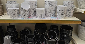 Here at Greenscapes we have a wide selection of cover pots in various materials, shapes, colours and sizes.