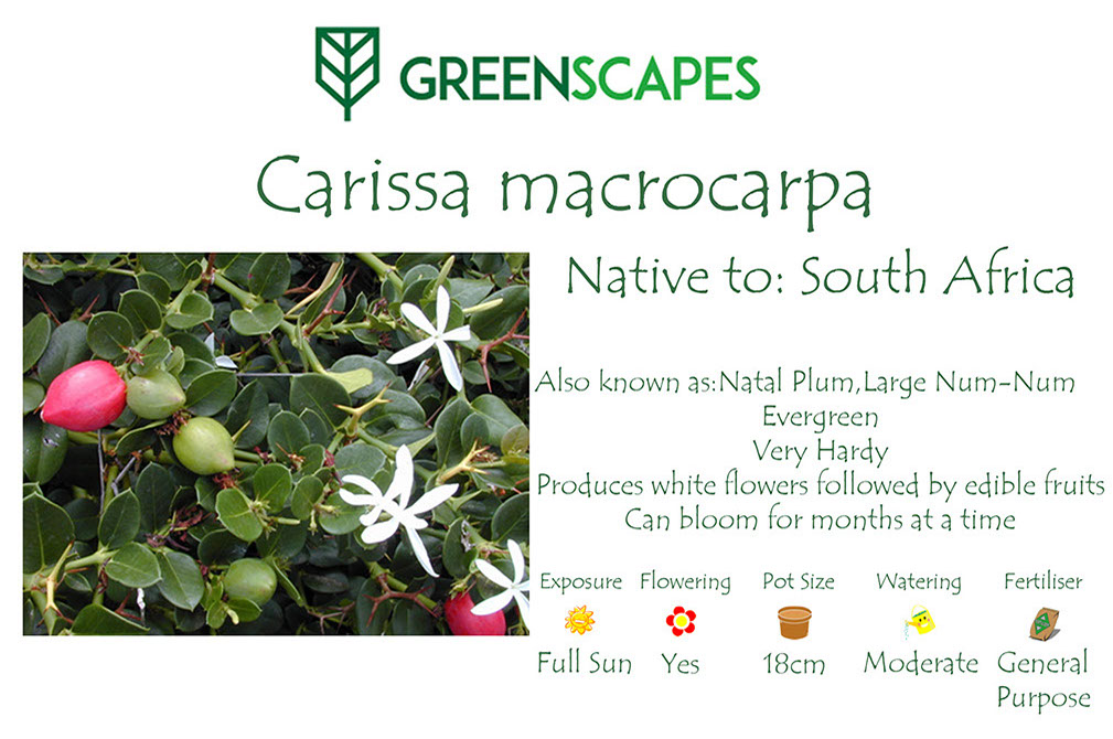 Outdoor plants At Greenscapes one can always find a large selection of outdoor plants suitable for most outdoor environments. Here you can see a selection of the plants usually available.